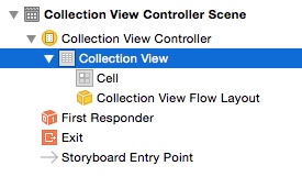 现在打开 Main.storyboard,选中视图大纲中的Collection View,如下图所示