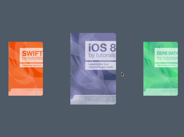 滑动来查看每个封面是如何放大和缩小的。但是如果书籍吸附在相应位置是不是更好呢?接下来我们就来实现这个。