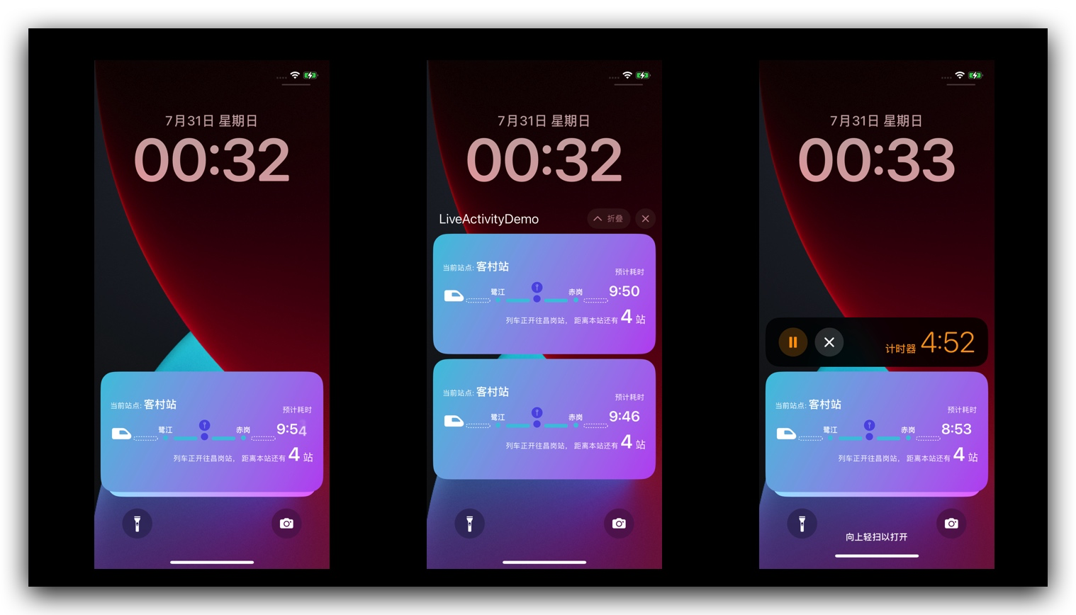 写了个 Demo,模拟地铁到站预估时间的场景,代码放在 GitHub/iOS16LiveActivityDemo 上了,有啥疑问可以留言或者提 issue。